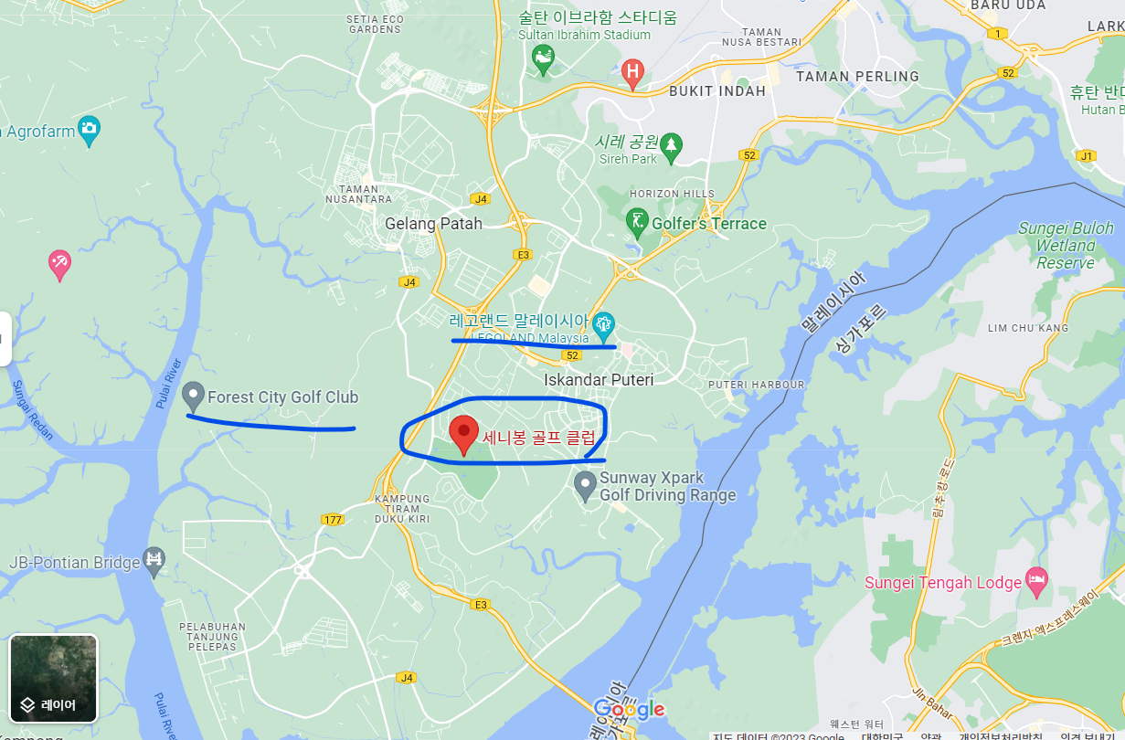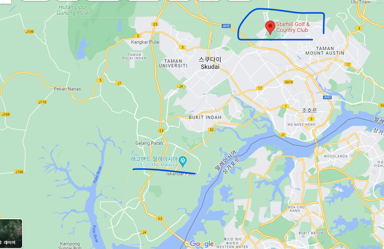 사진은 못 찍었네요. 여기는 230링깃이고요. 캐디는 필수입니다. 2인 1명 하면 되고요...... 머 여유 있으시면 1인 1 캐디 하셔도 되고요.ㅎㅎ위치는 아래와 같습니다. 신도시에서는 매우 가깝고요.. 저는 앨리시아에 있었는데... 여기서는 10분 걸렸습니다.ㅎㅎ
